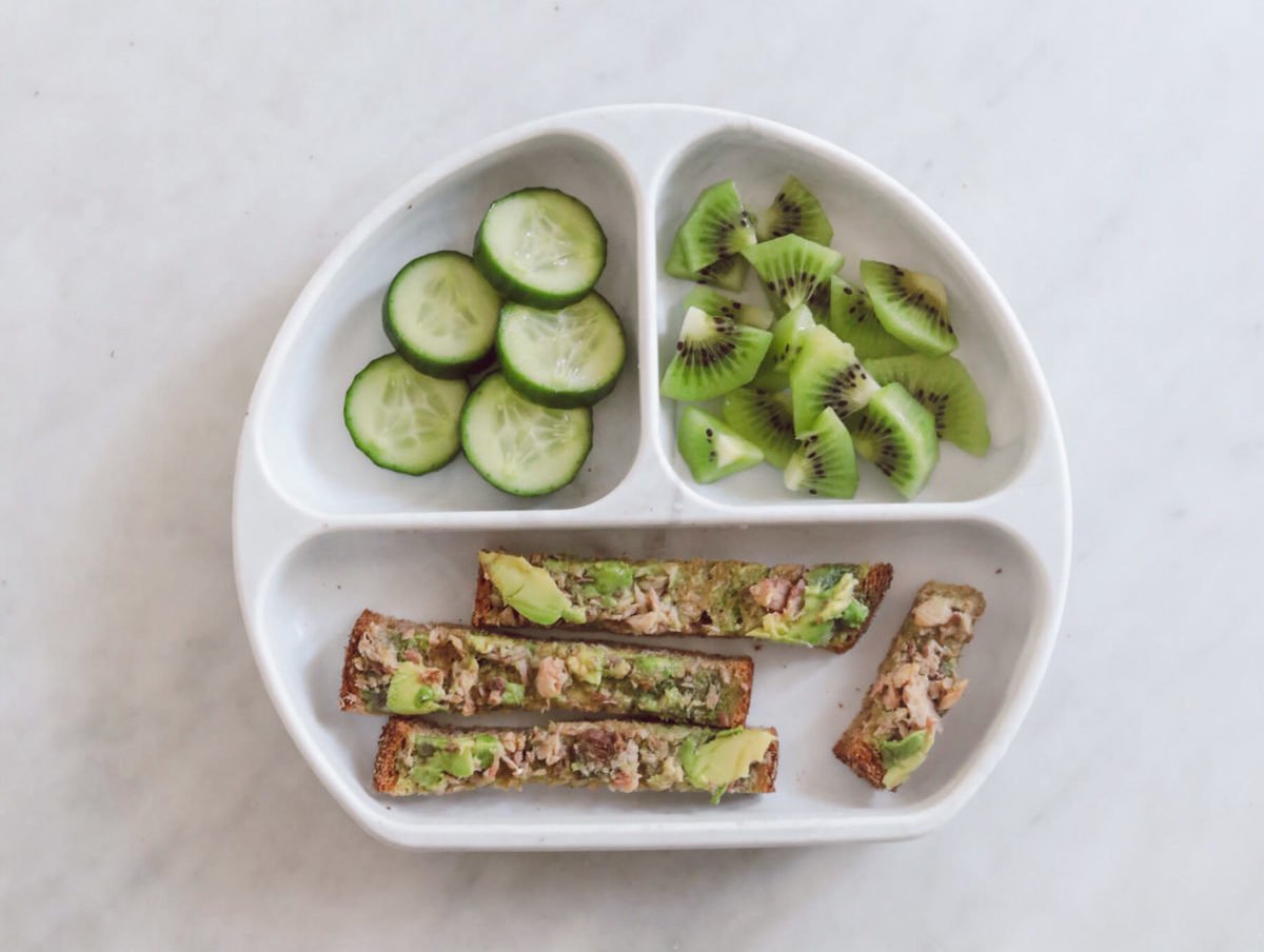 I know some people turn their nose up at sardines, but I wanted to expose Nori to this very nutritional food early on! We like Wild Planet brand sardines at Wholefoods (no salt added, canned in water) with Dave’s Killer Bread thinly sliced. Can also use leftover baked chicken in place of the sardines, or roll these up for more fun pinwheels per idea # 2 here!