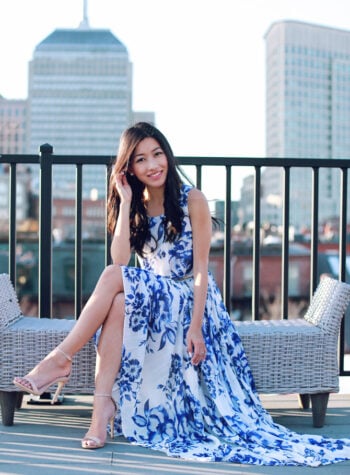 Eliza J petites chiffon maxi dress (sz 2P altered; belt is included! Other prints here) Steve Madden “Stecy” sandals sz 5.5, Essie “fiji” nail polish I was…