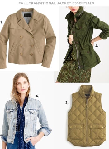 1. Swing trench 2. Army jacket 3. Down vest 4. Broken-in denim jacket (medium wash) Each starts in xxxs petite with numerous color options I’ve pulled…